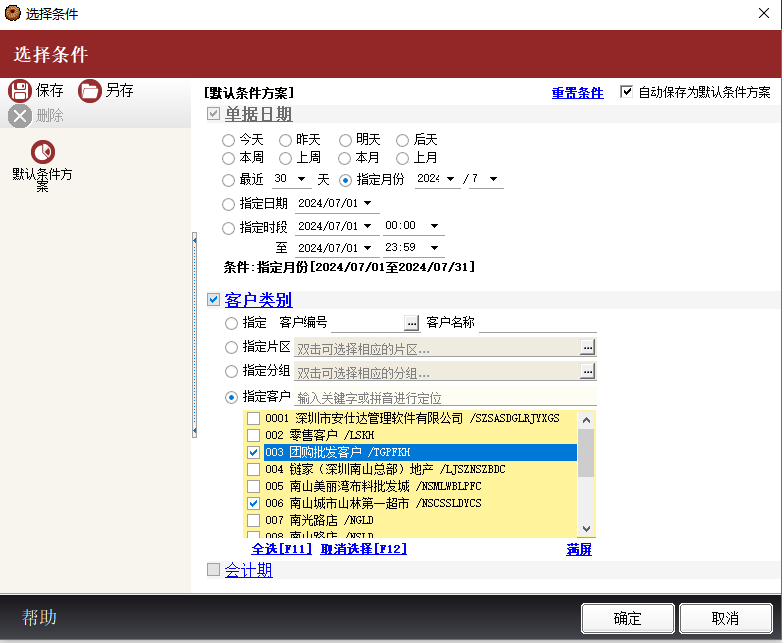 1.进入查询界面后,设置查询条件比如:可以根据日期、客户等