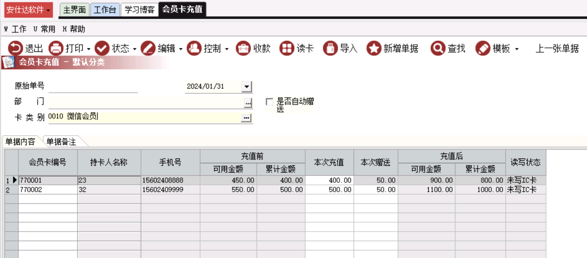 (1)会员卡批量充值,快速完成团购卡充值业务