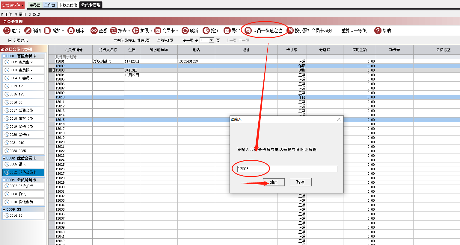 过期不属于会员卡异常状态,如果需要调整过期卡,需要在会员卡管理中,修改会员卡时间