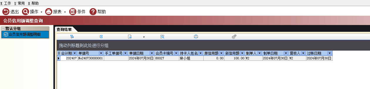 路径:【会员管理】→【会员业务】→【会员信用额调整查询】