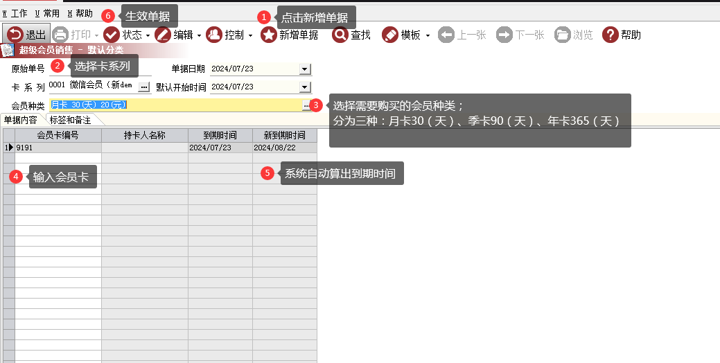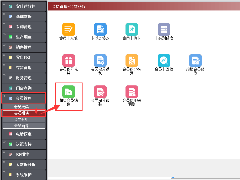 【会员管理】→【会员业务】→【超级会员销售】