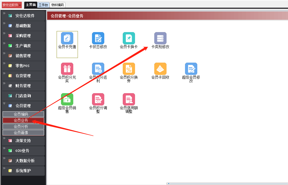 按路径打开卡类别修改界面:会员管理 — 会员业务 — 卡类别修改