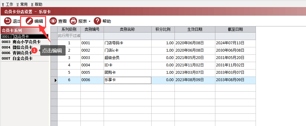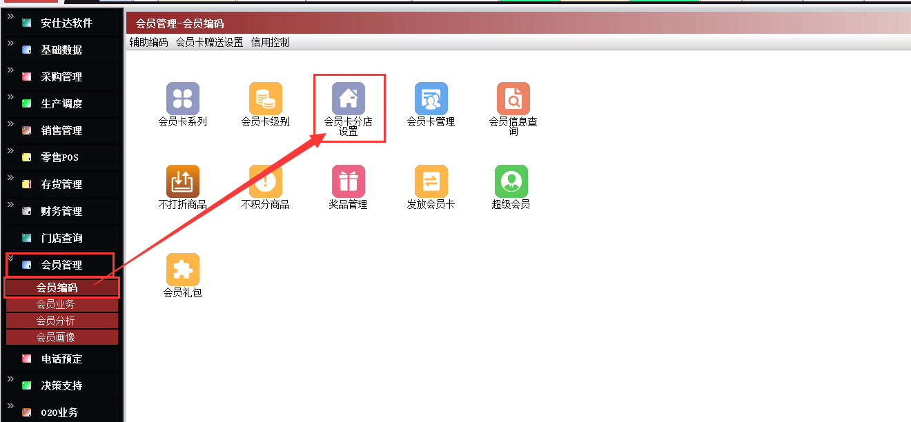 路径:【会员管理】→【会员编码】→【会员卡分店设置】