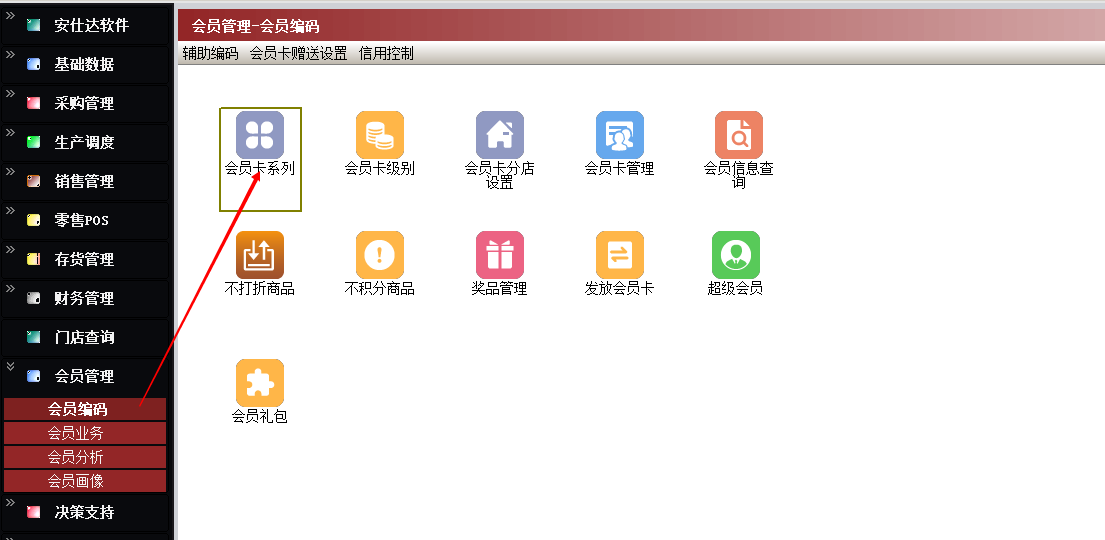 路径:【会员管理】→【会员编码】→【会员卡系列】