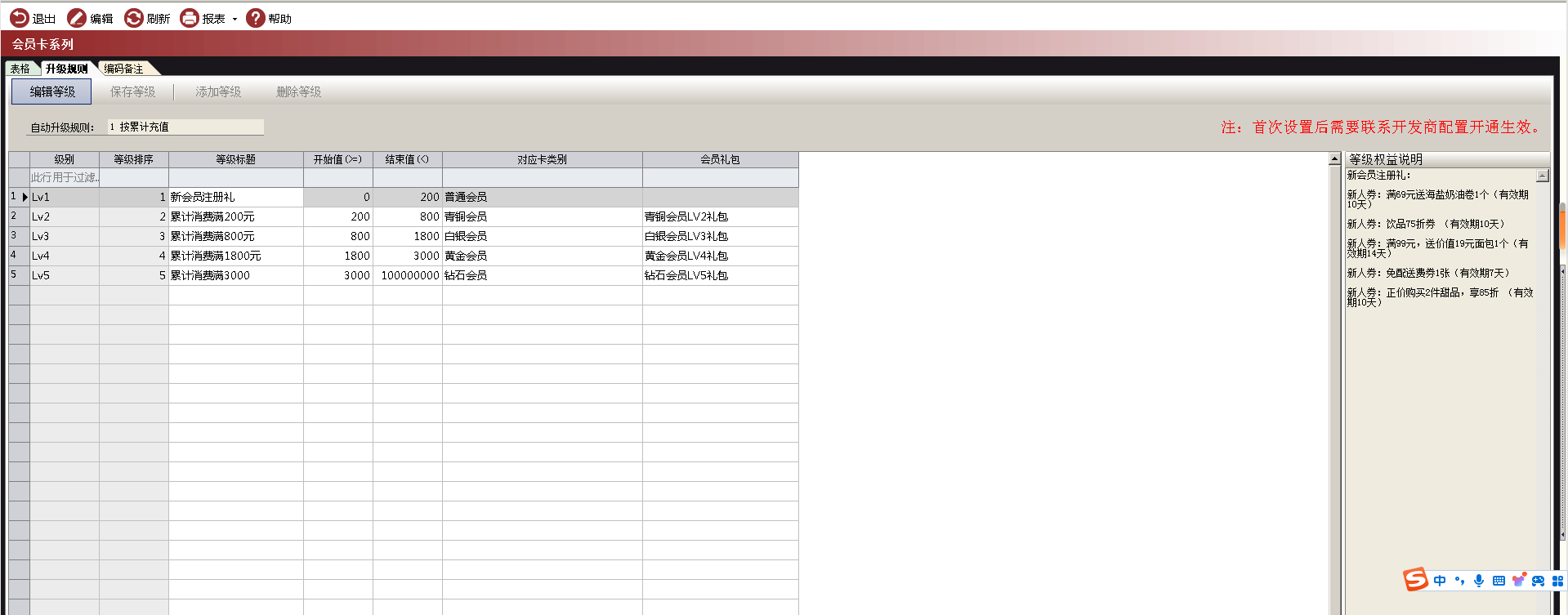 1、按累计充值金额:按会员卡累计充值金额来升级