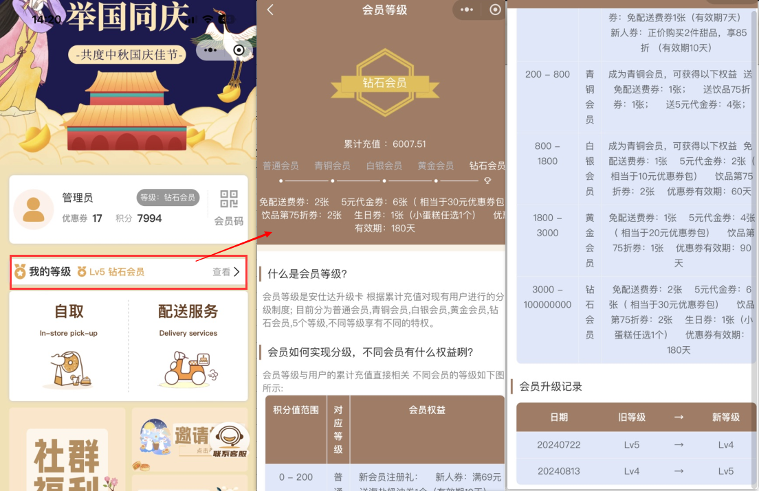 等级权益说明:填写升级到对应等级好处及赠送礼包信息,吸引客户消费升级