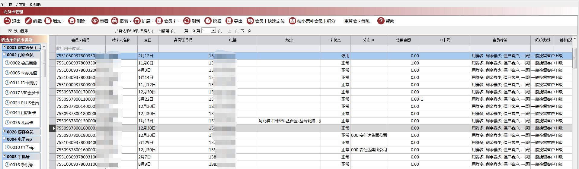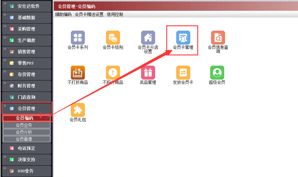 路径:【会员管理】→【会员编码】→【会员卡管理】