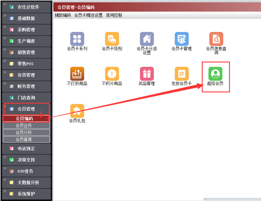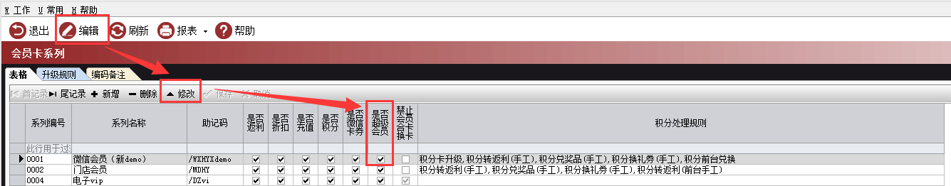 路径:【会员管理】→【会员编码】→【会员卡系列】