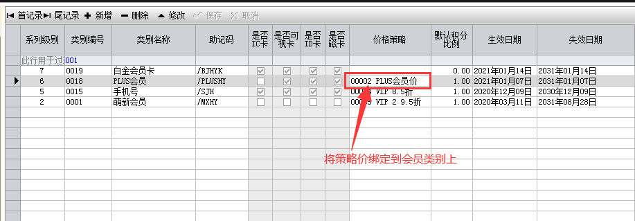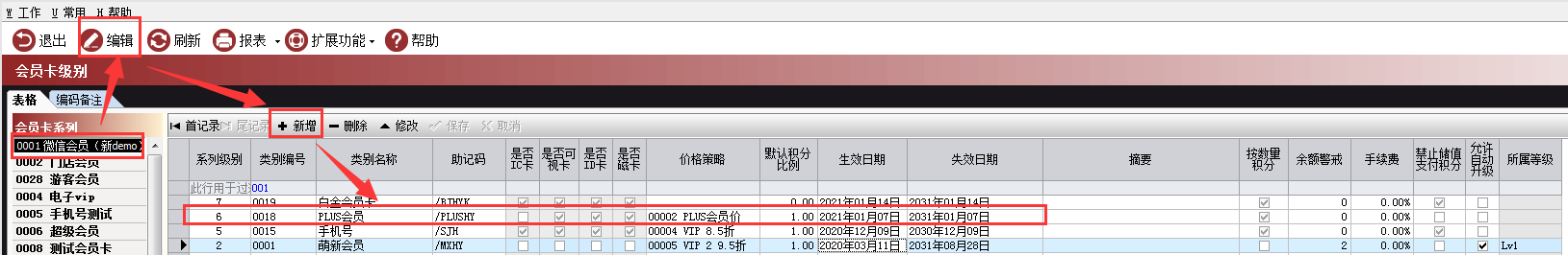 路径:【会员管理】→【会员编码】→【会员卡级别】