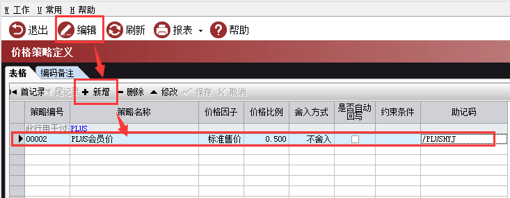 路径:【销售管理】→【价格管理】→【价格策略定义】