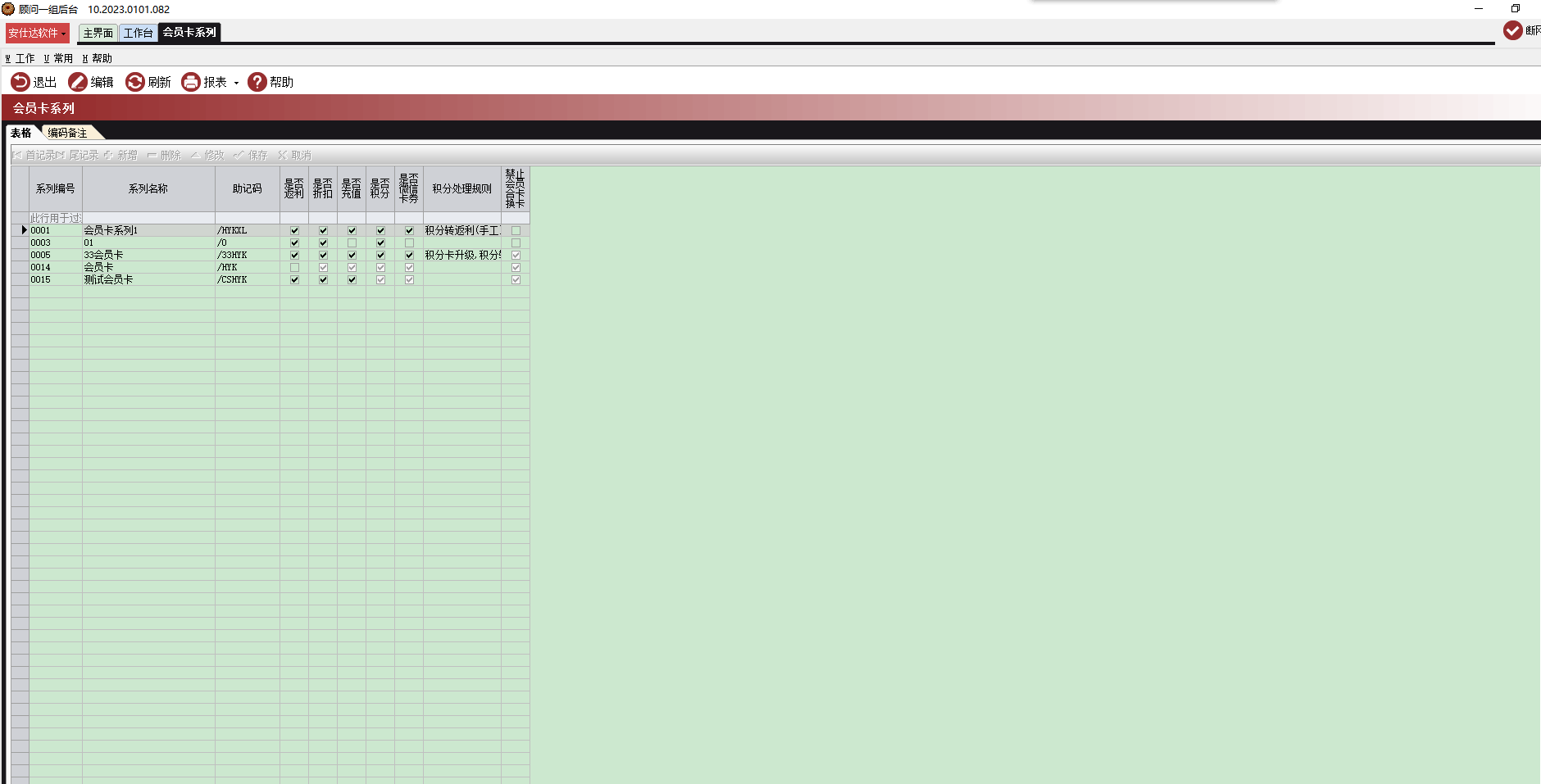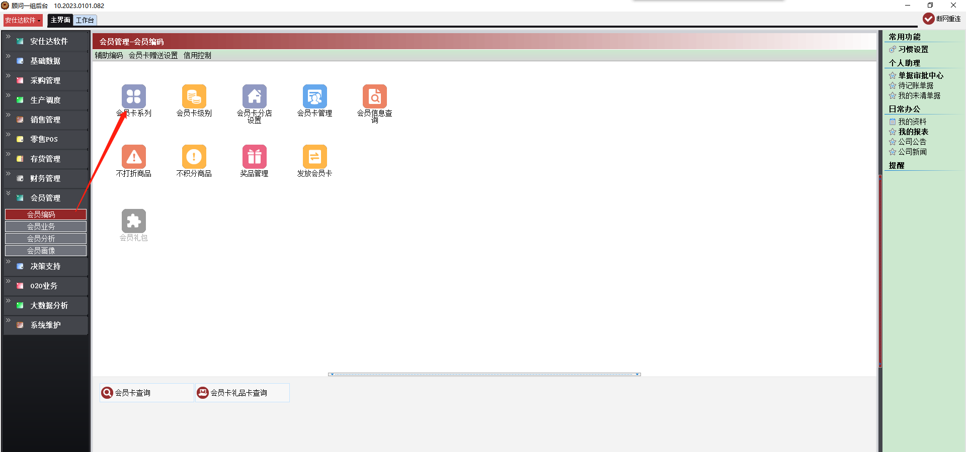 会员管理→会员编码→会员卡系列