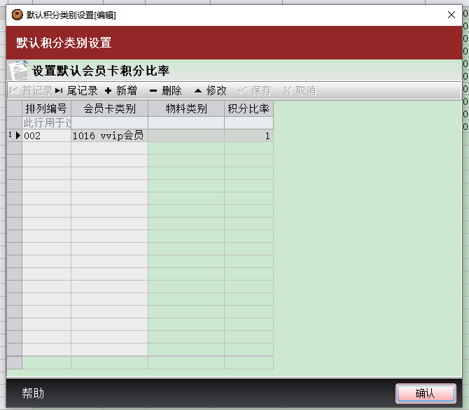默认积分类别比率设置:用于定义商品类别积分比率,不同的商品类别积分比例不一样。