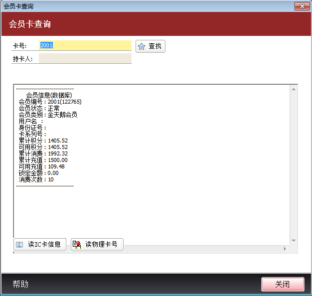 用于查询会员卡在数据库的信息和IC卡里面的信息。