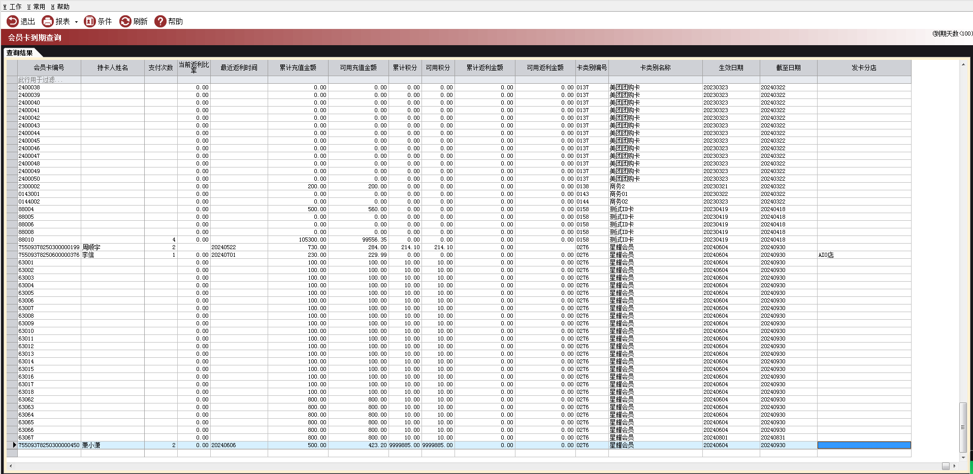 会员卡过了截止日期后,会员卡将不能再使用。此模块用于查询哪些会员卡已经过期,且查询小于过期的天数的会员卡。