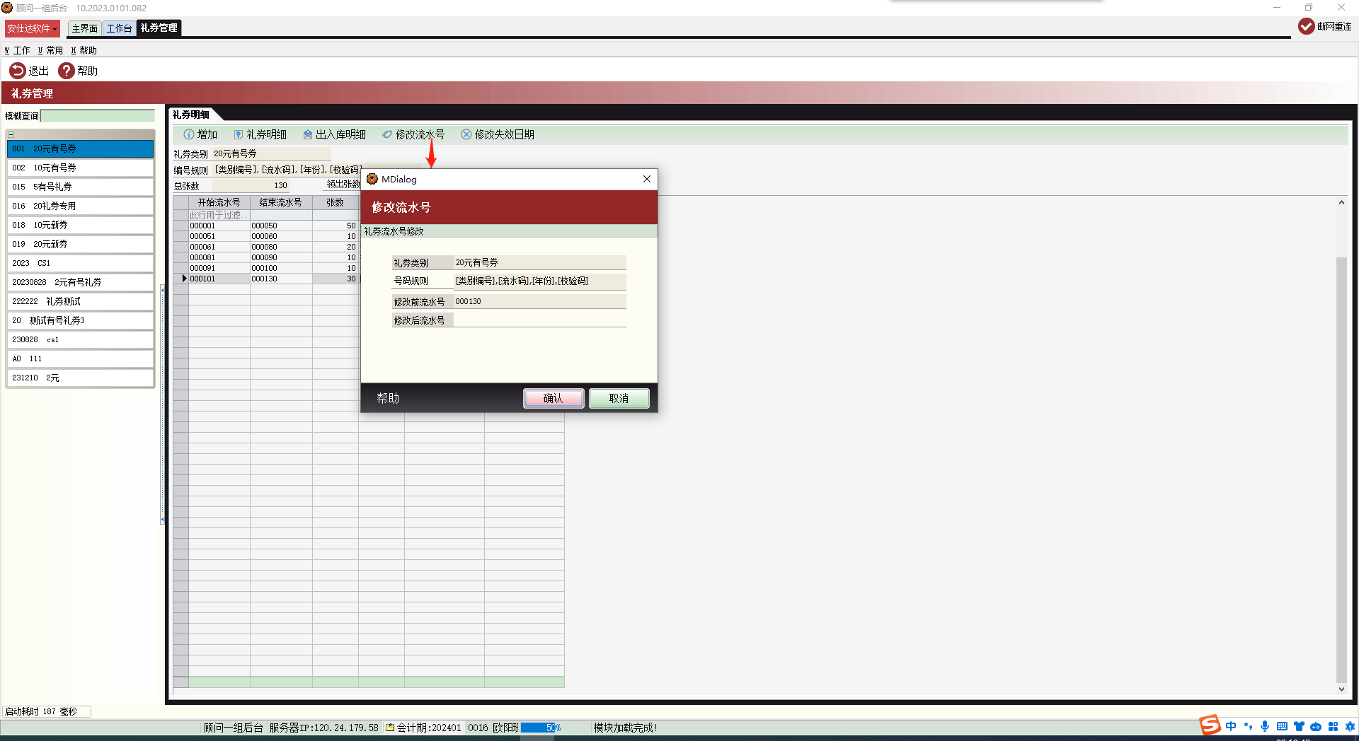 用于修改增加礼券时的开始流水号,建议默认即可。