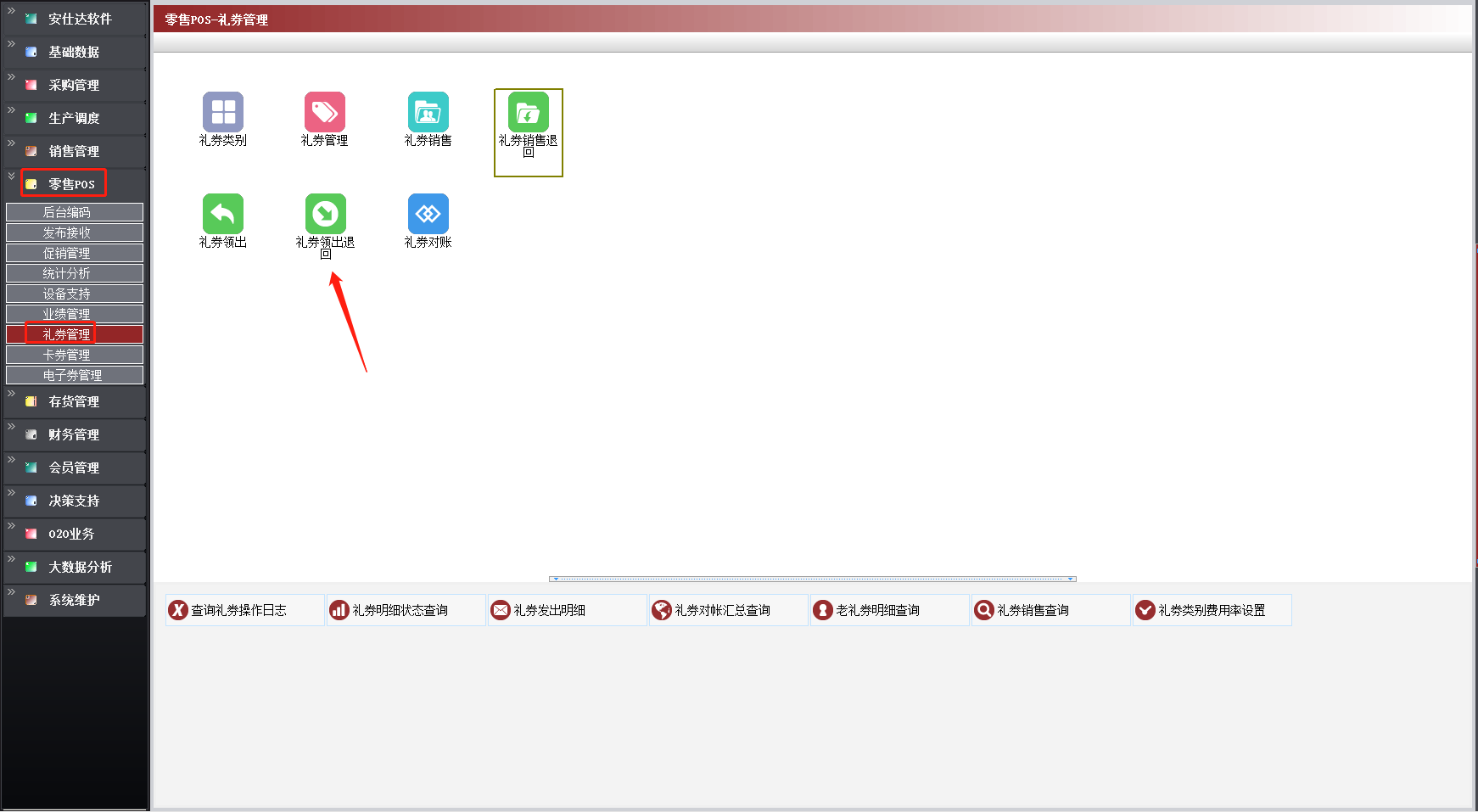 零售POS—礼券管理—礼券领出退回