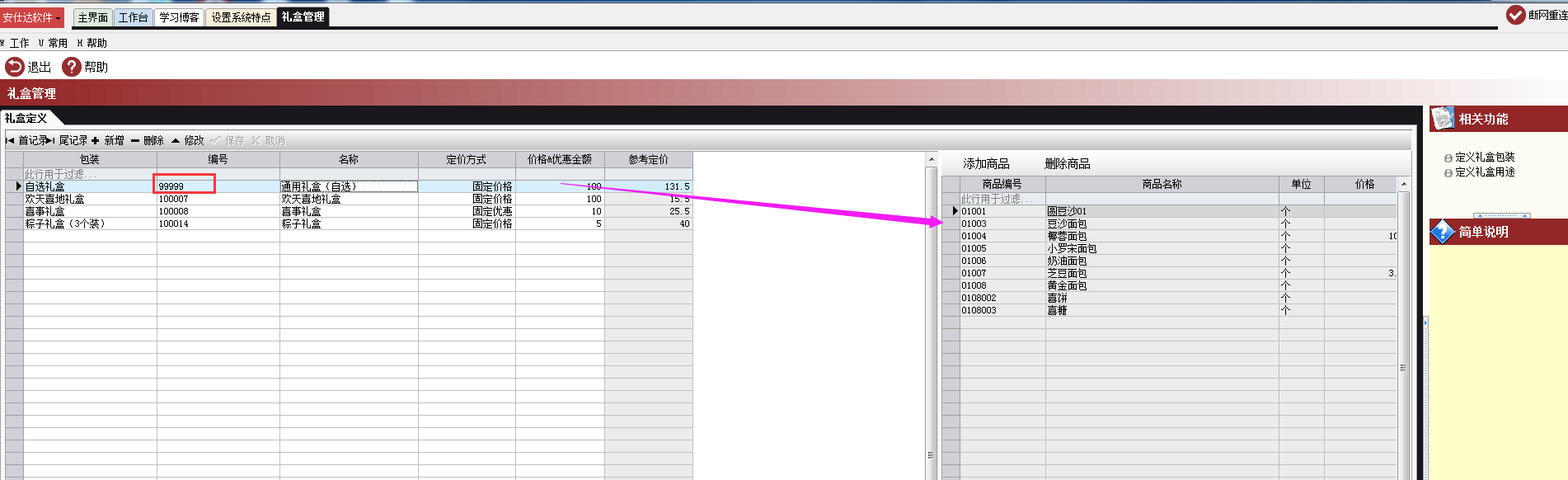 注意:默认编号99999的,这个是系统的通用礼盒,自选礼盒所有的产品都只能添加在通用礼盒里面才可以