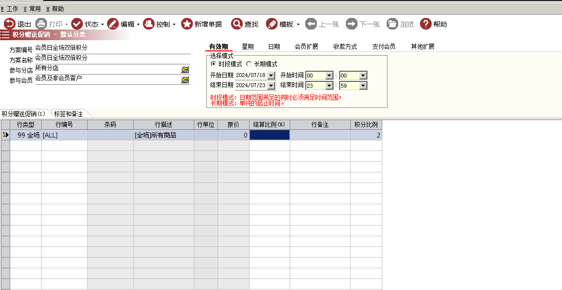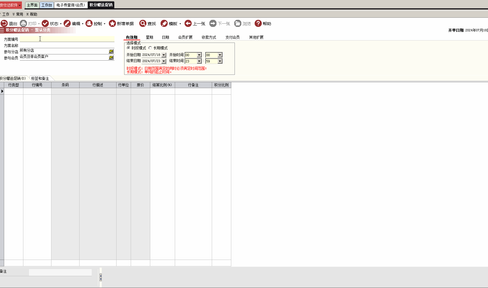 收款方式:用于限制参与活动收款方式。如:勾选会员卡,表示前台参与活动,支付时只能使用会员卡支付