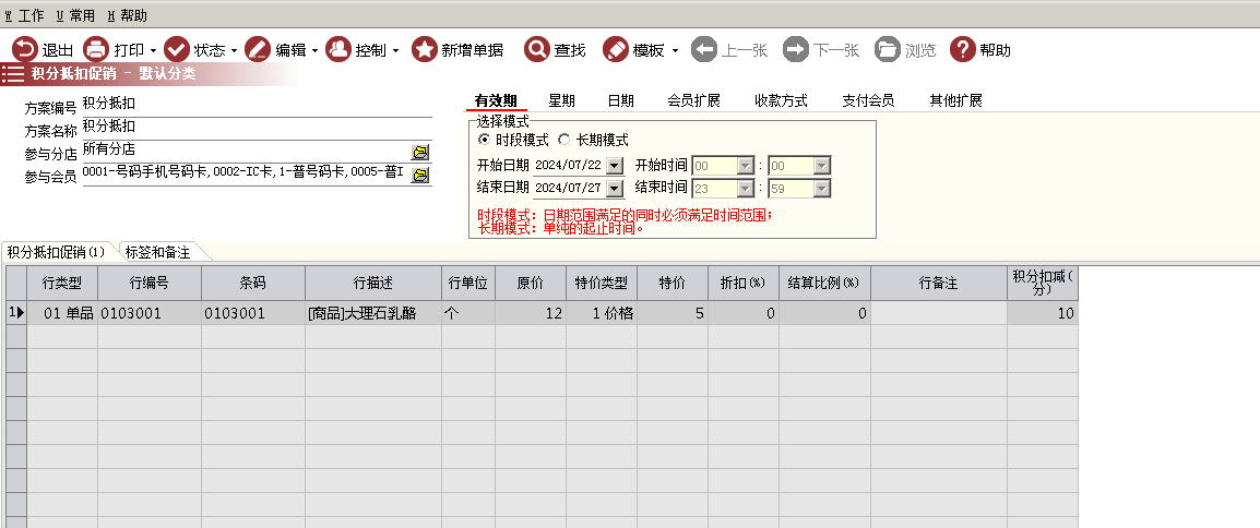 收款方式:用于限制参与活动收款方式。如:勾选会员卡,表示前台参与活动,支付时只能使用会员卡支付