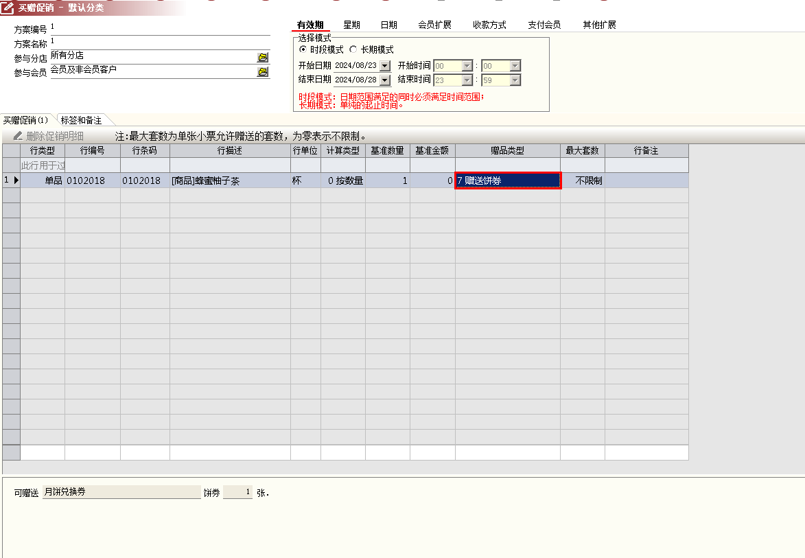 方案名称:促销方案的名称,建议按实际活动产品命名,方便后续快速查询活动