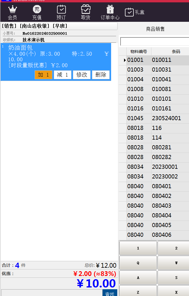 打开量贩特价后,点击新增单据,输入方案编号、名称,选择开始日期、结束日期,选择活动开始时间跟结束时间,点击添加量贩商品,选择对应的商品