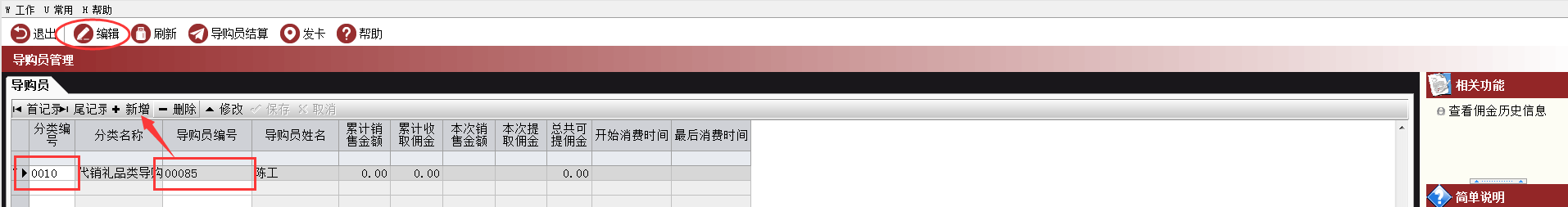 1、打开导购员管理菜单,可以通过编辑,新增导购员,也可以直接进行导购员结算统计操作,统计导购员的累计佣金和可以提现的佣金