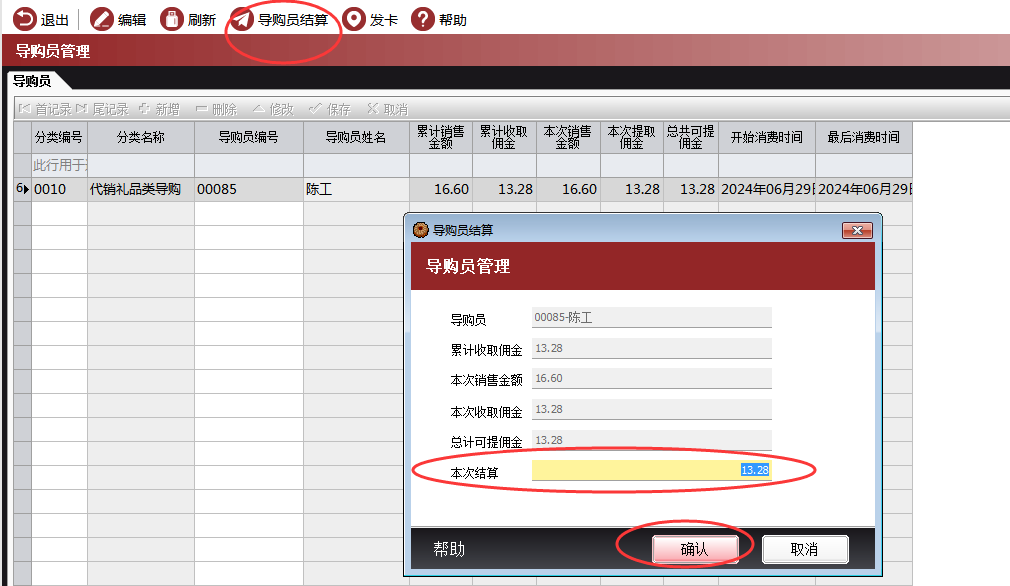 可进行导购员的佣金结算操作,也可以方便快速查找到导购员过去的佣金结算情况,便于导购员的集中管理。