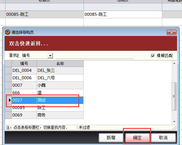 2、选择新的的导购员0027,并且确认操作,这样就已经完成了修改导购员的操作了