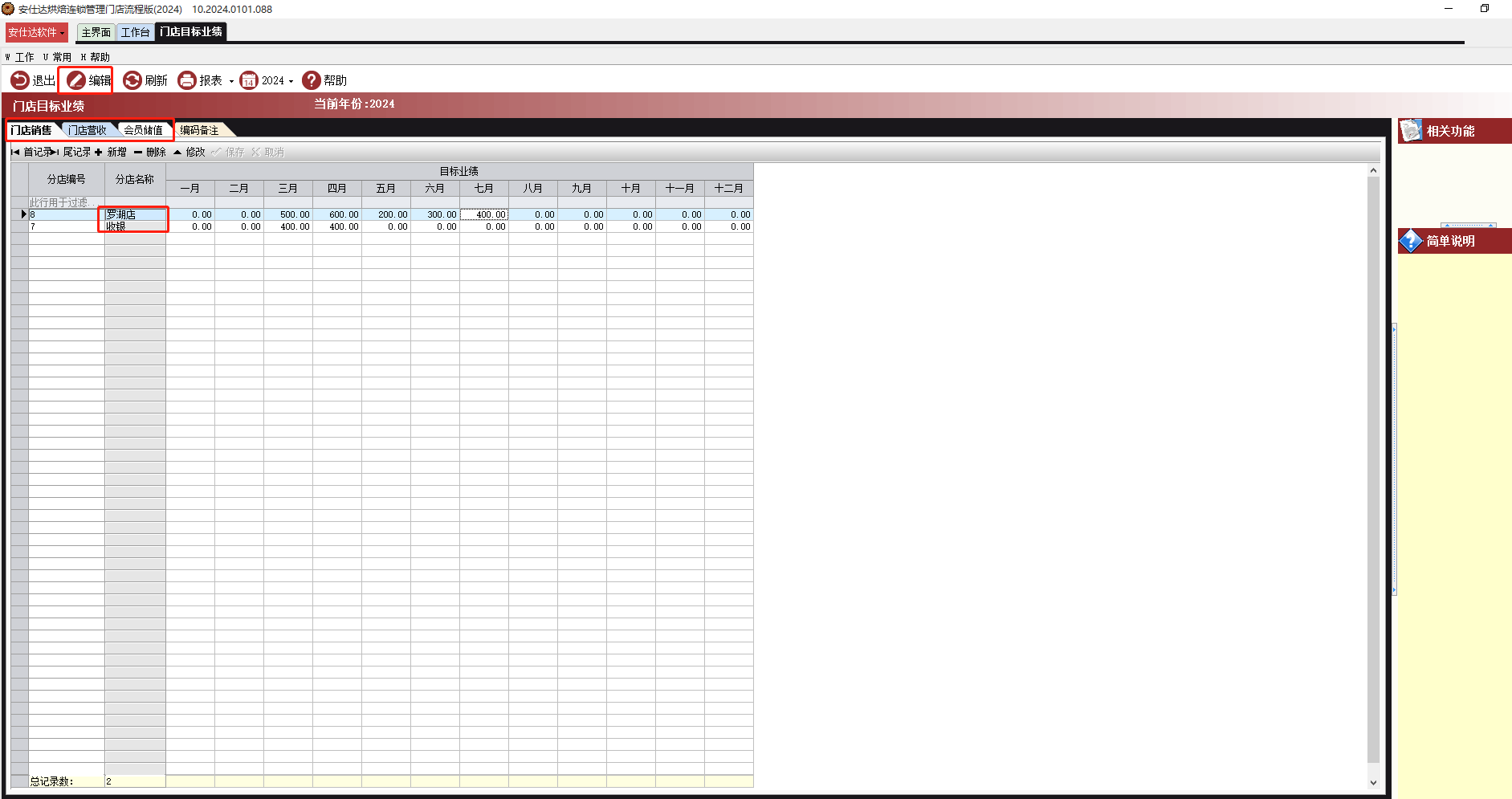给门店设置每个月份的销售、营收、会员储值目标,门店可以分析目标完成进度