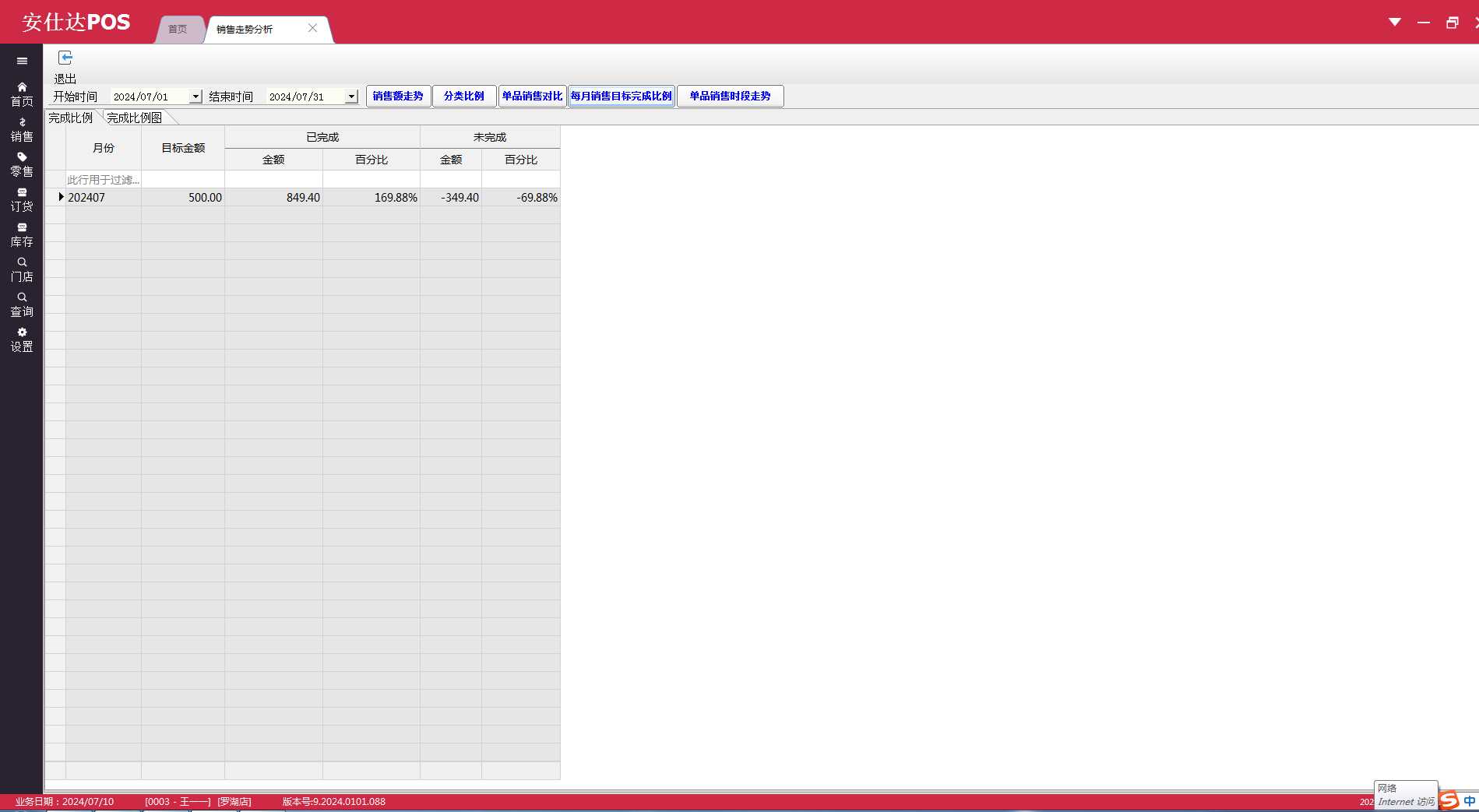 查看罗湖店7月份目标业绩完成情况