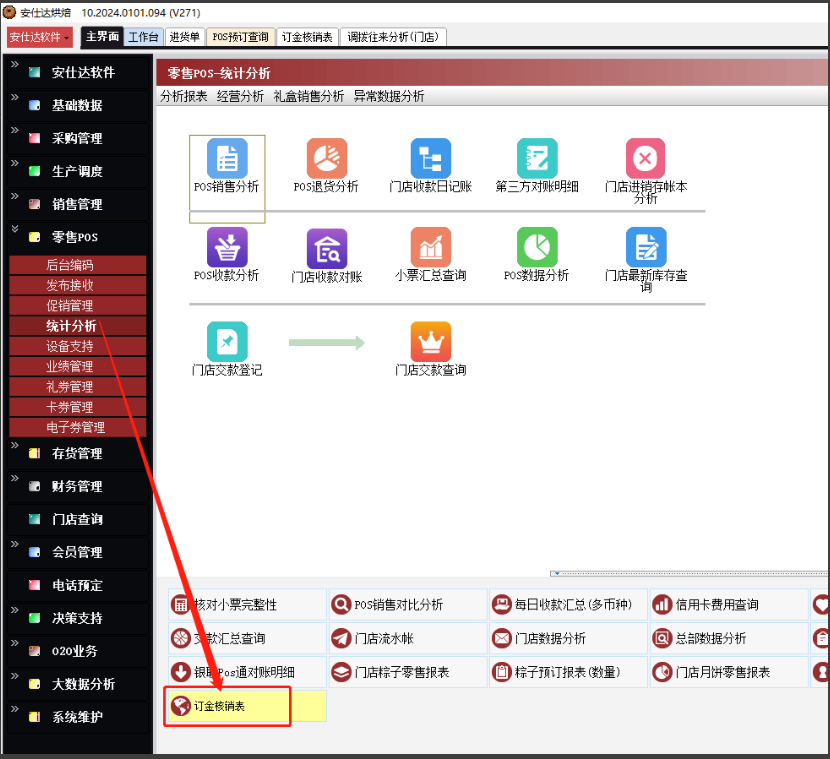 零售pos--统计分析--订金核销表