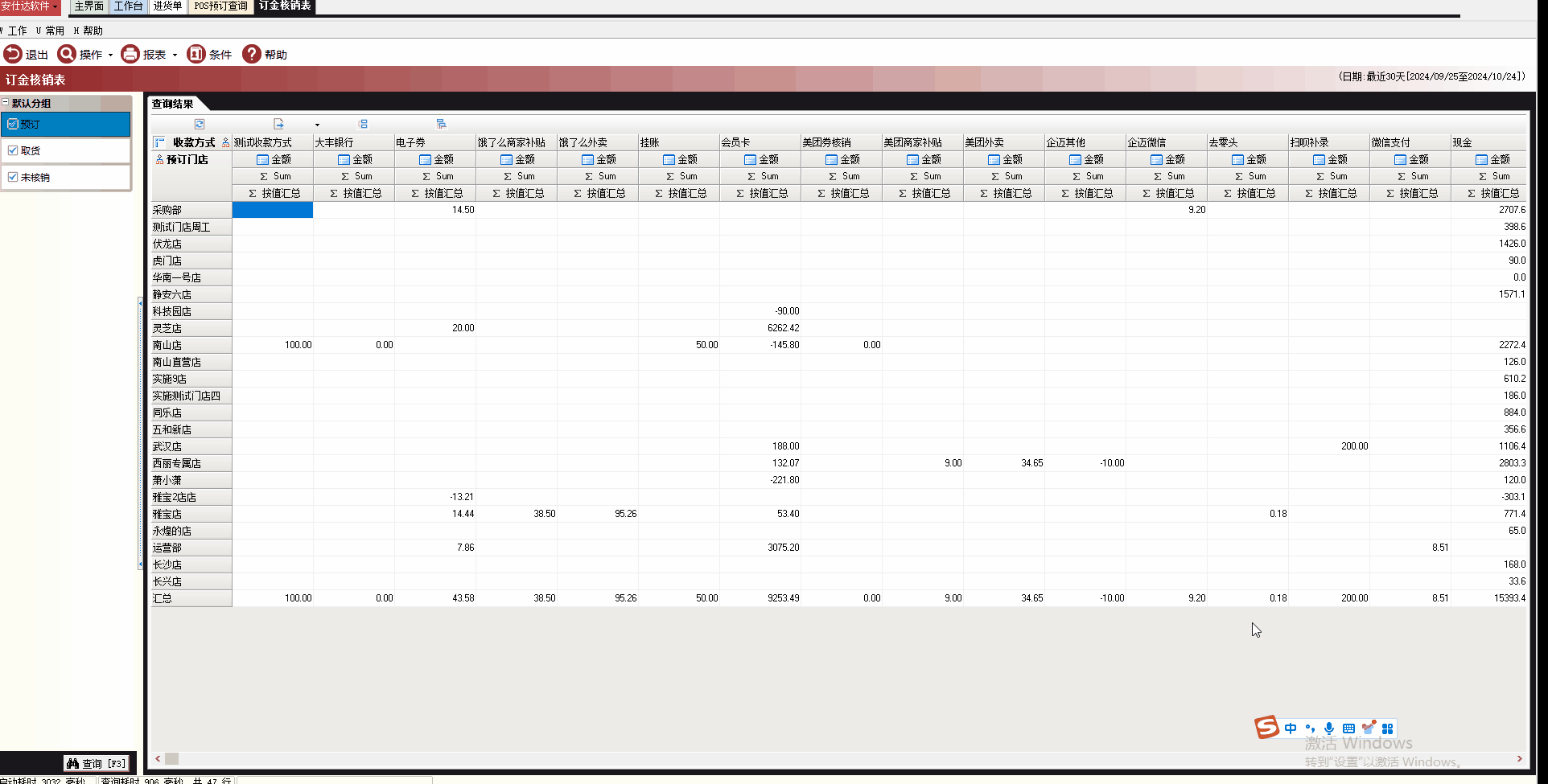 方便客户直接通过报表查询出预定金额、取货金额、待核销金额(预定-取货得到的金额)