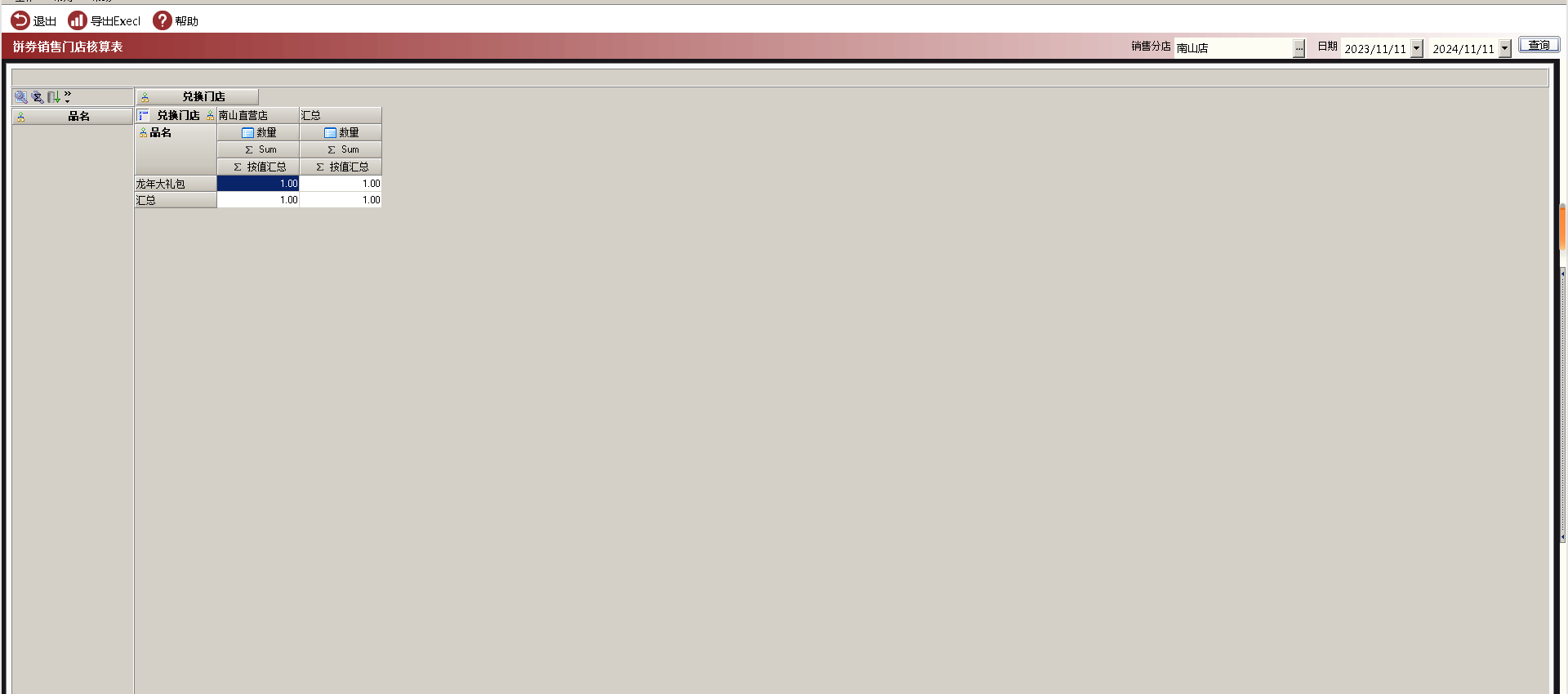 用于查询饼券在本门店销售,但在其他门店兑换的数据(如;在A门店饼券销售,在B门店饼券兑换,查看A门店就会有数据)