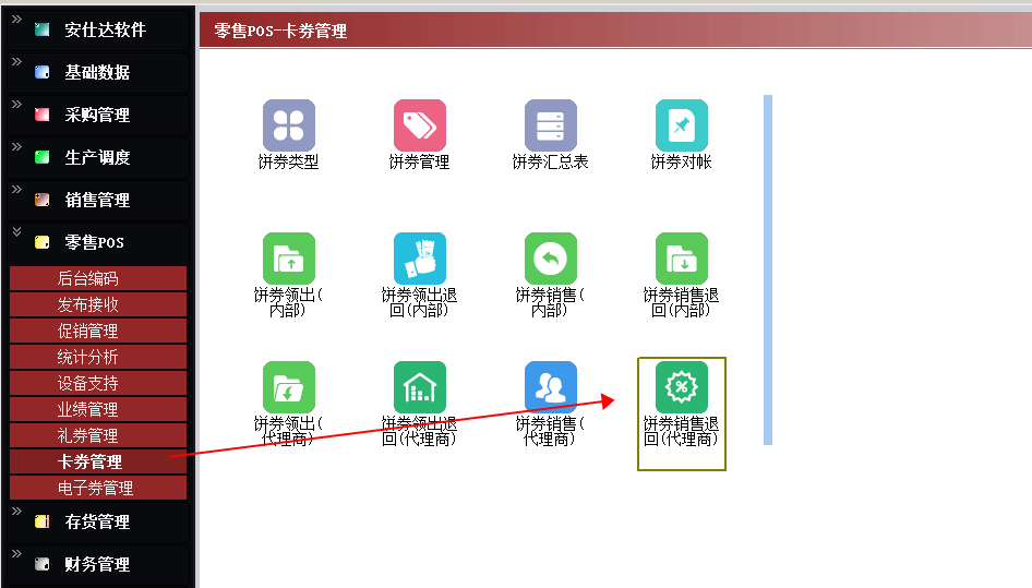 零售pos-卡券管理-饼券销售退回(内部)