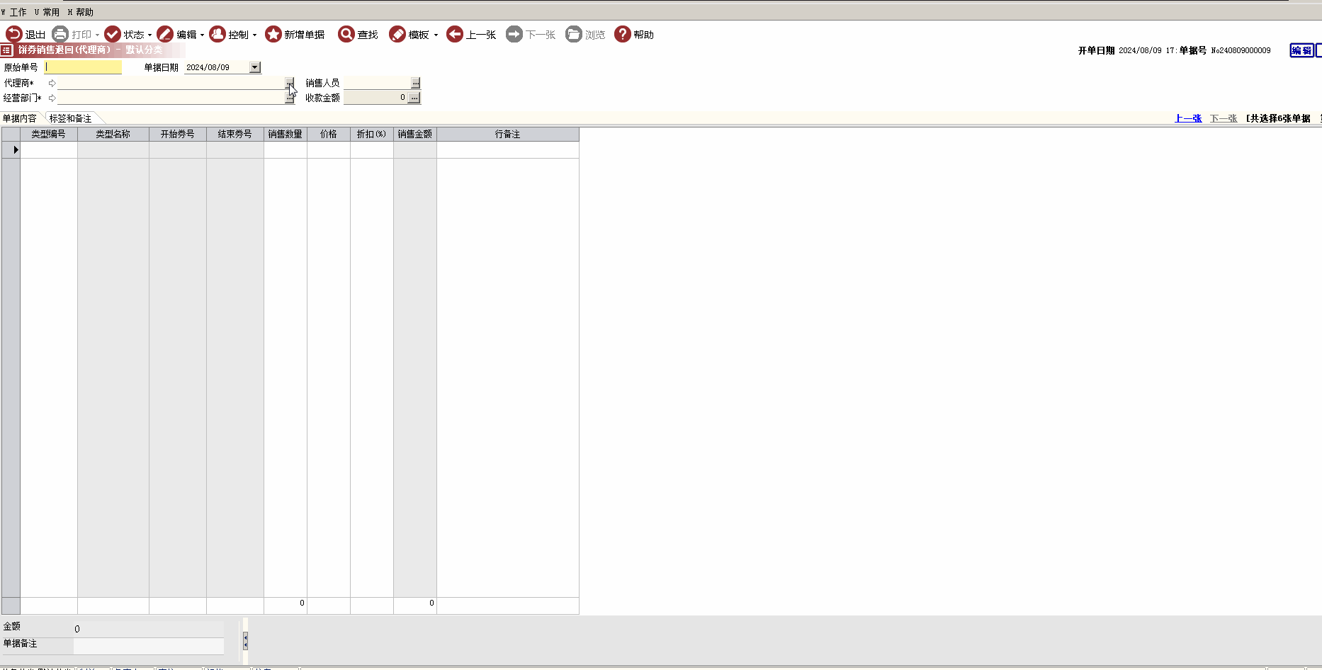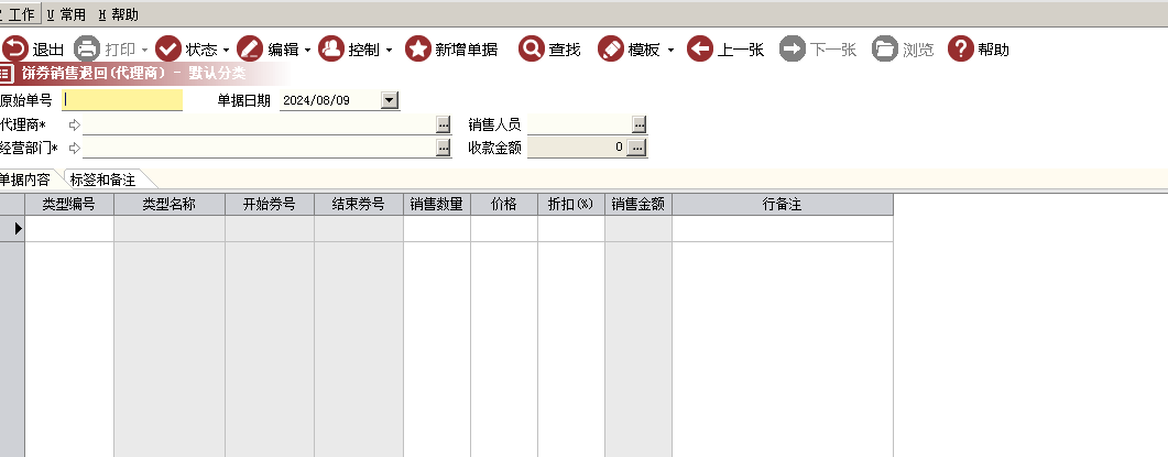 用于记录代理商销售后退回给代理商的饼券的张数,不需要核对饼券号,只需统计饼券销售张数即可