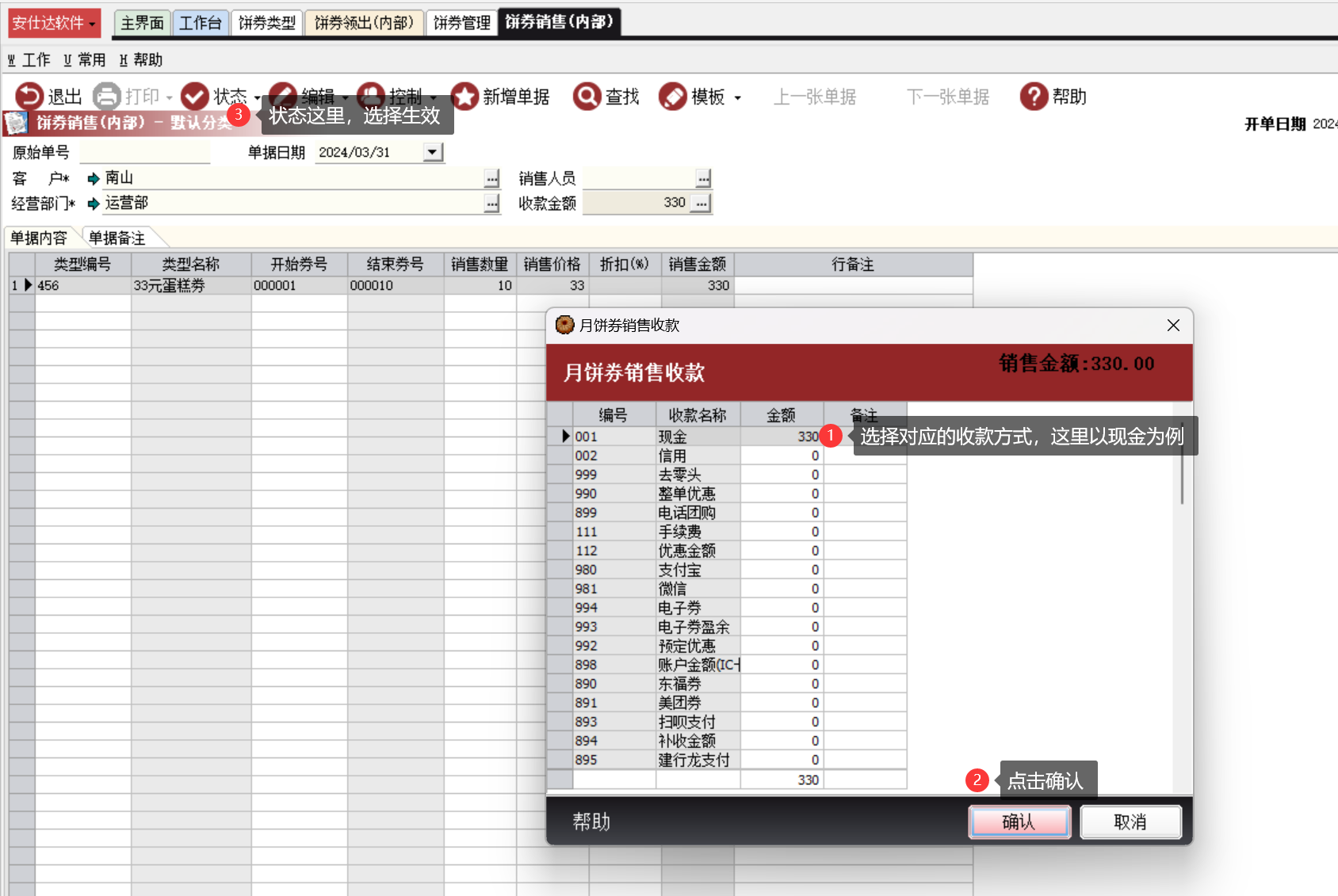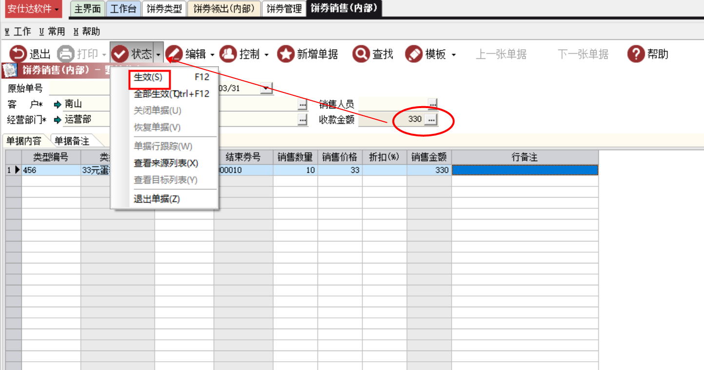用于领取部门(内部)在后台将饼券售出,也可在领取部门门店售出