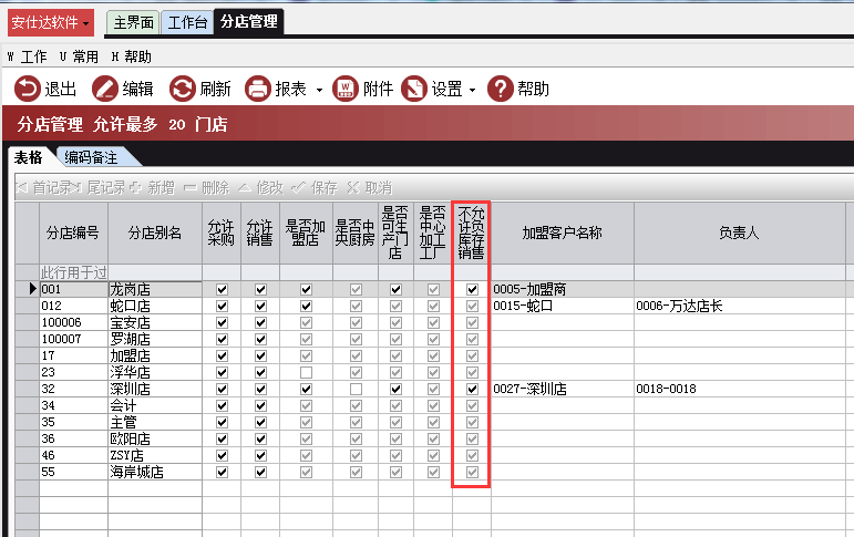 用于控制门店不允许负库存销售以及调拨等业务操作