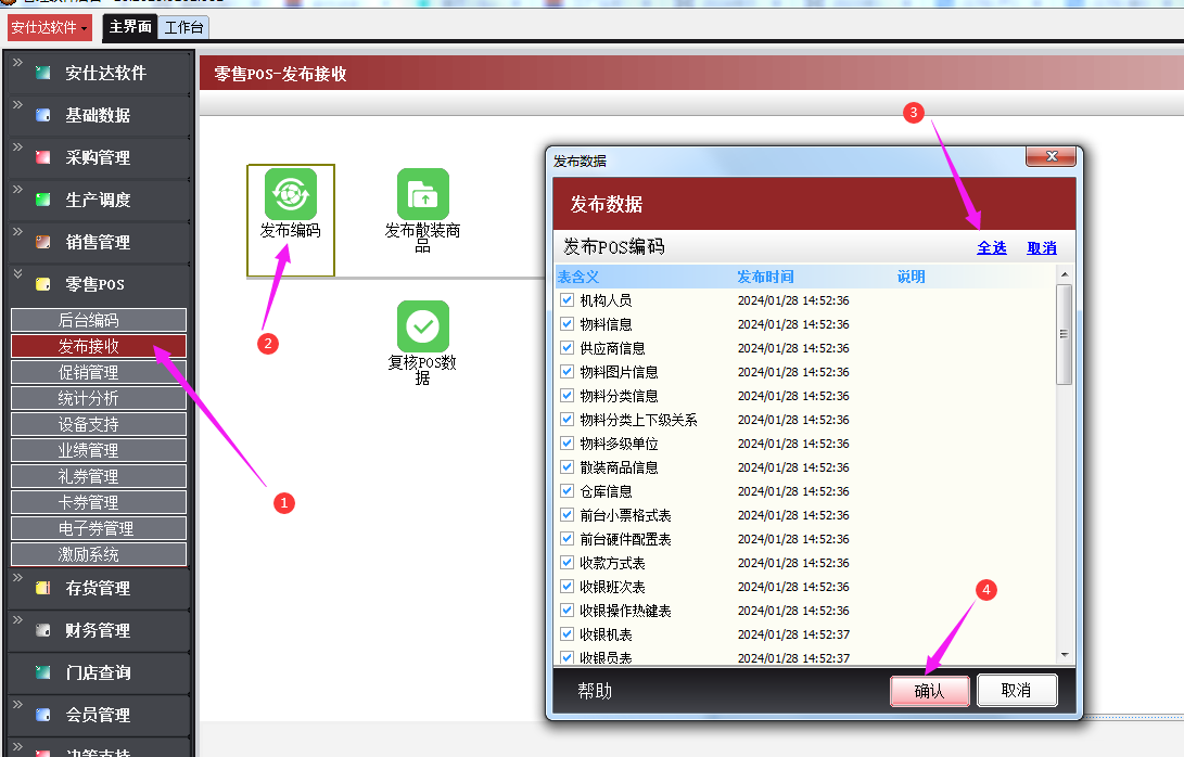 ⑦设置完成后,后台发布编码,门店退出系统重新登陆即可