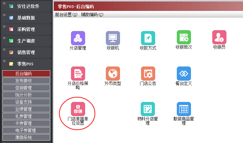 路径:零售pos-后台编码-门店单据单位设置
