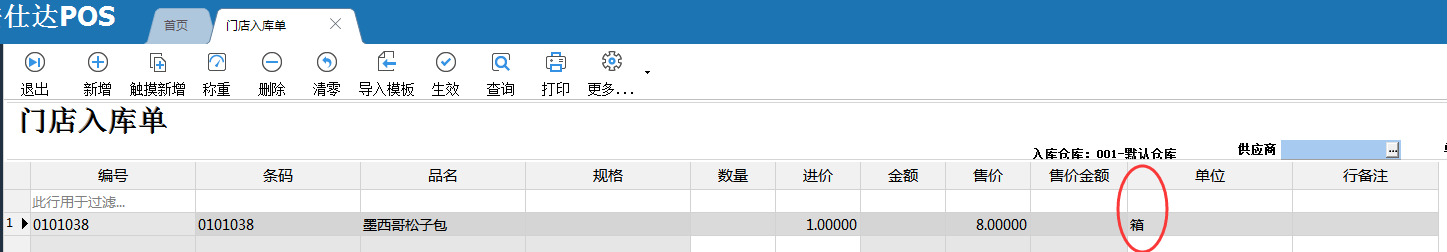 2、上图我们将“是否门店入库、是否门店盘点”两个单据类型的单打上勾,门店会默认按箱单位进行制单,门店同步后如下图