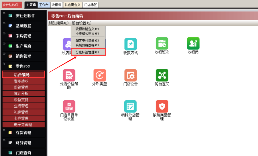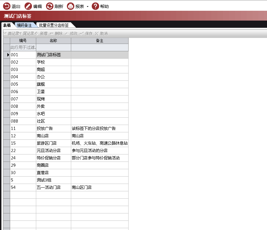 路径:零售pos-后台编码-前台设置-分店标签管理