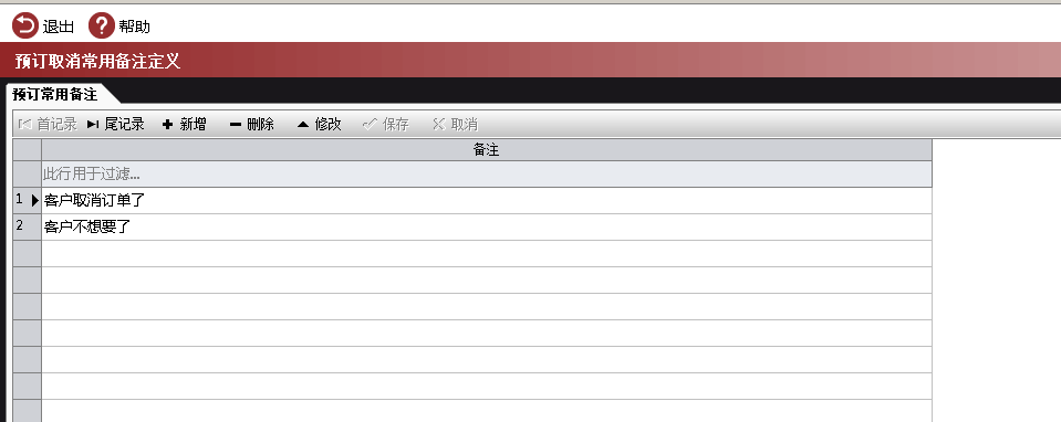 路径:零售pos-后台编码-预定常用备注定义/预定取消常用备注定义