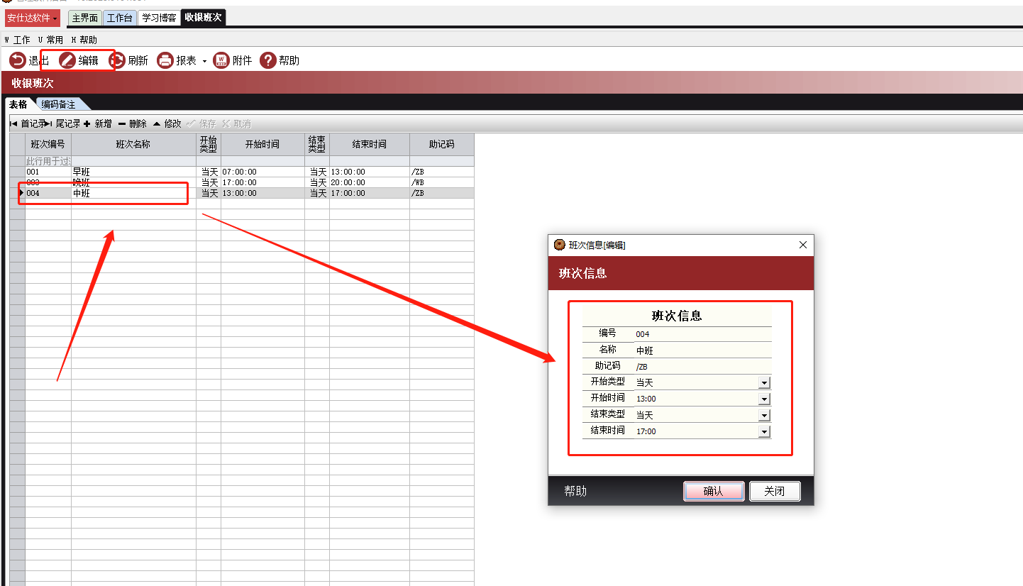 编辑 — 选中需要调整的班次 — 双击打开修改界面