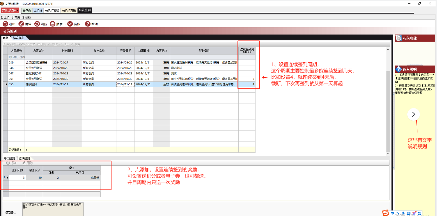 只能设置一条连续签到赠送规则。并且连续签到周期内只送一次奖励。