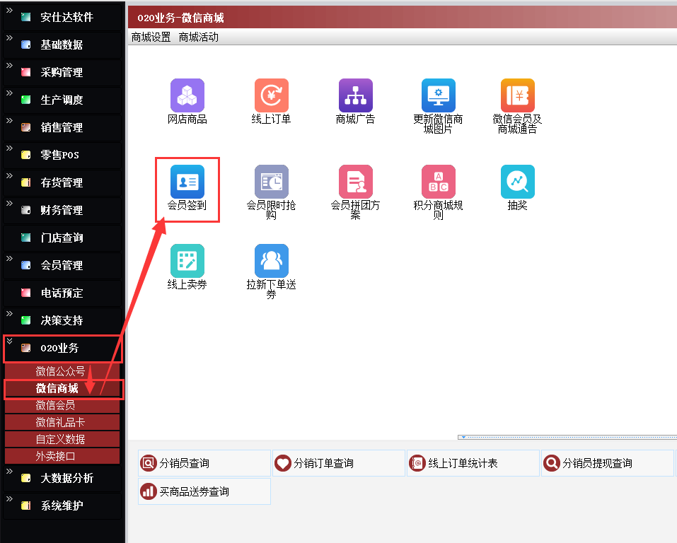 路径:【O2O业务】→【微信商城】→【会员签到】