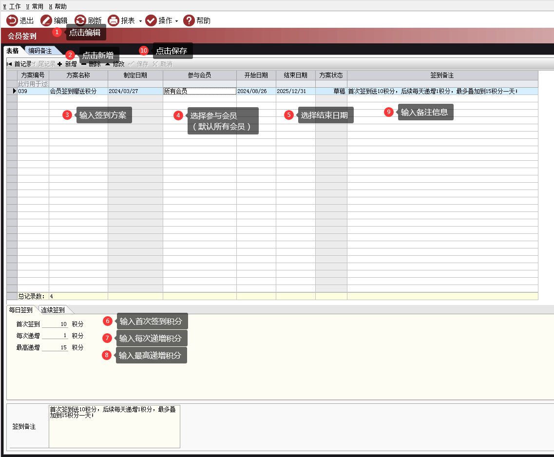 连续签到送积分:连续签到多少天之后一次性赠送积分。