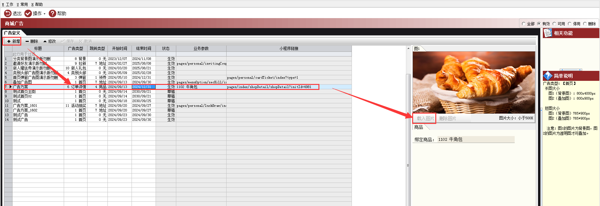 路径:【O2O业务】→【微信商城】→【商城广告】