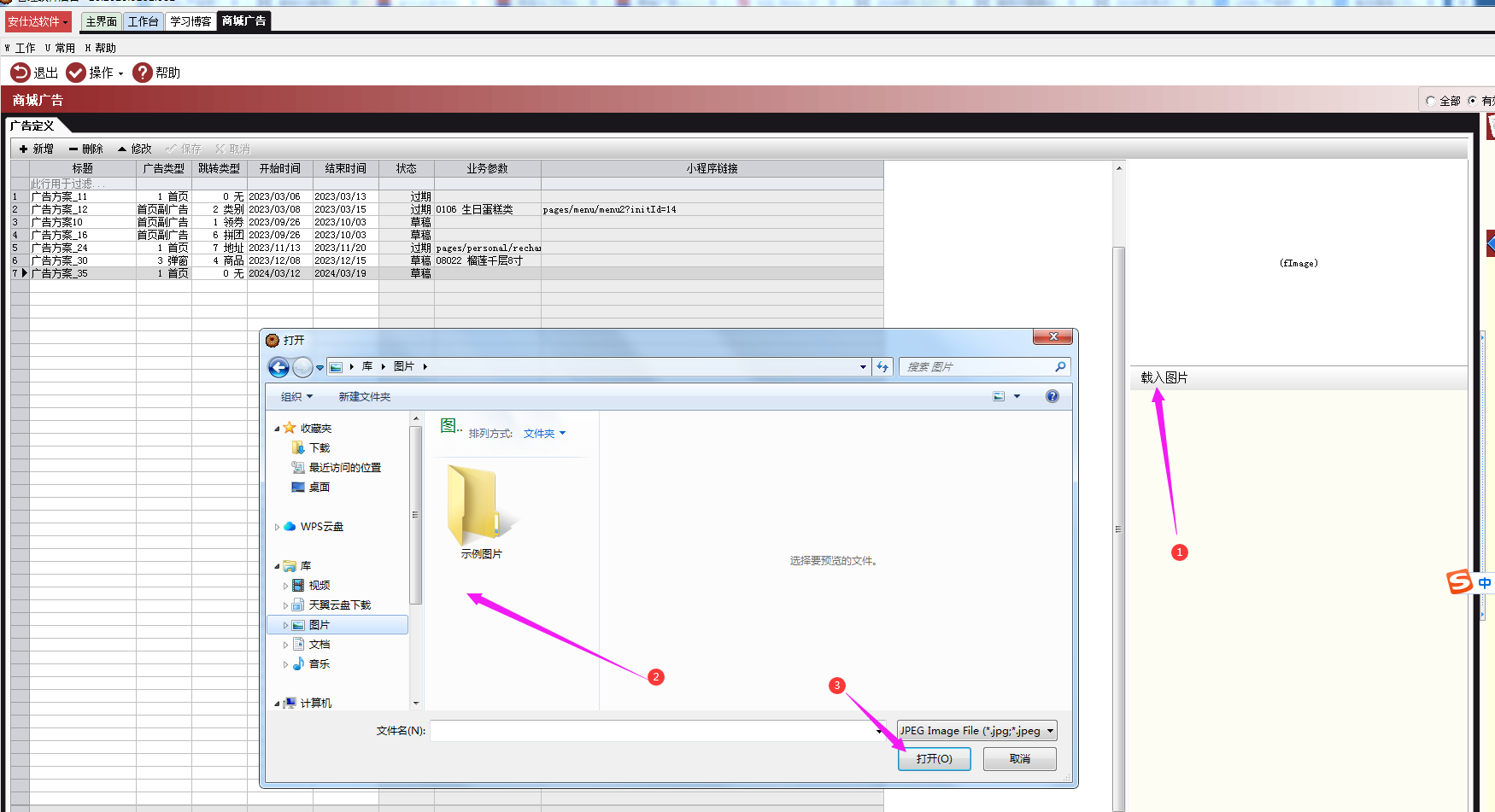 然后点击右侧的【载入图片】按钮,选择需要展示的图片文件,然后点击打开,图片就上传上去了