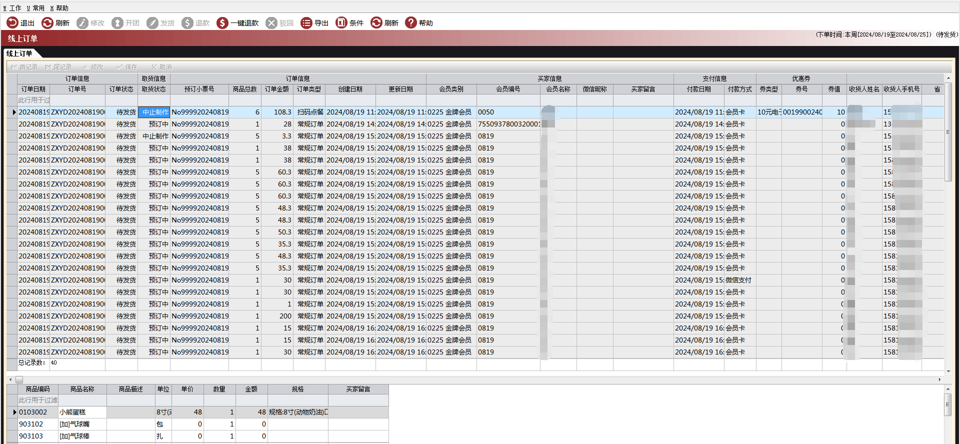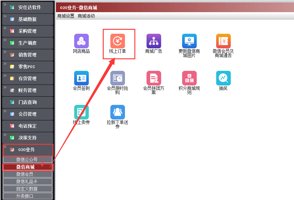 路径:【O2O业务】→【微信商城】→【线上订单】
