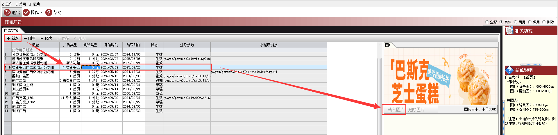 路径:【O2O业务】→【微信商城】→【商城广告】